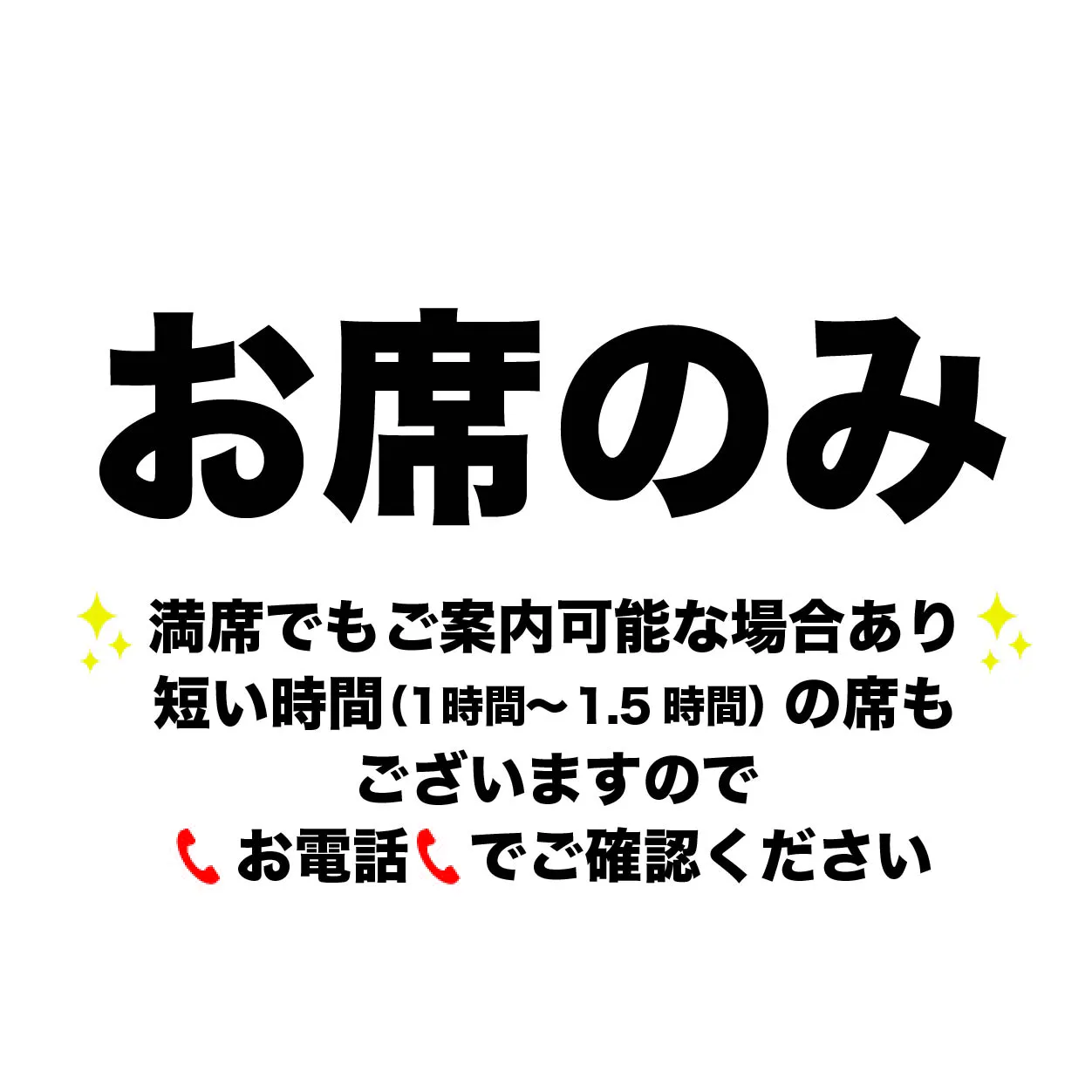 お席のみ ※満席表示でもご案内可能な場合あります。お電話でご確認ください。