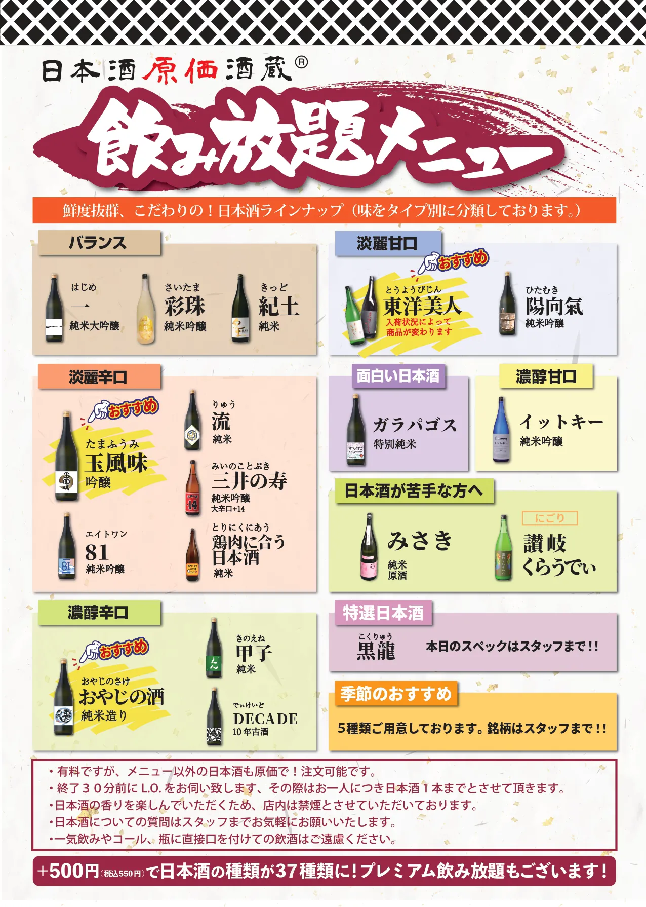 - 日本酒居酒屋 日本酒原価酒蔵 池袋西口店